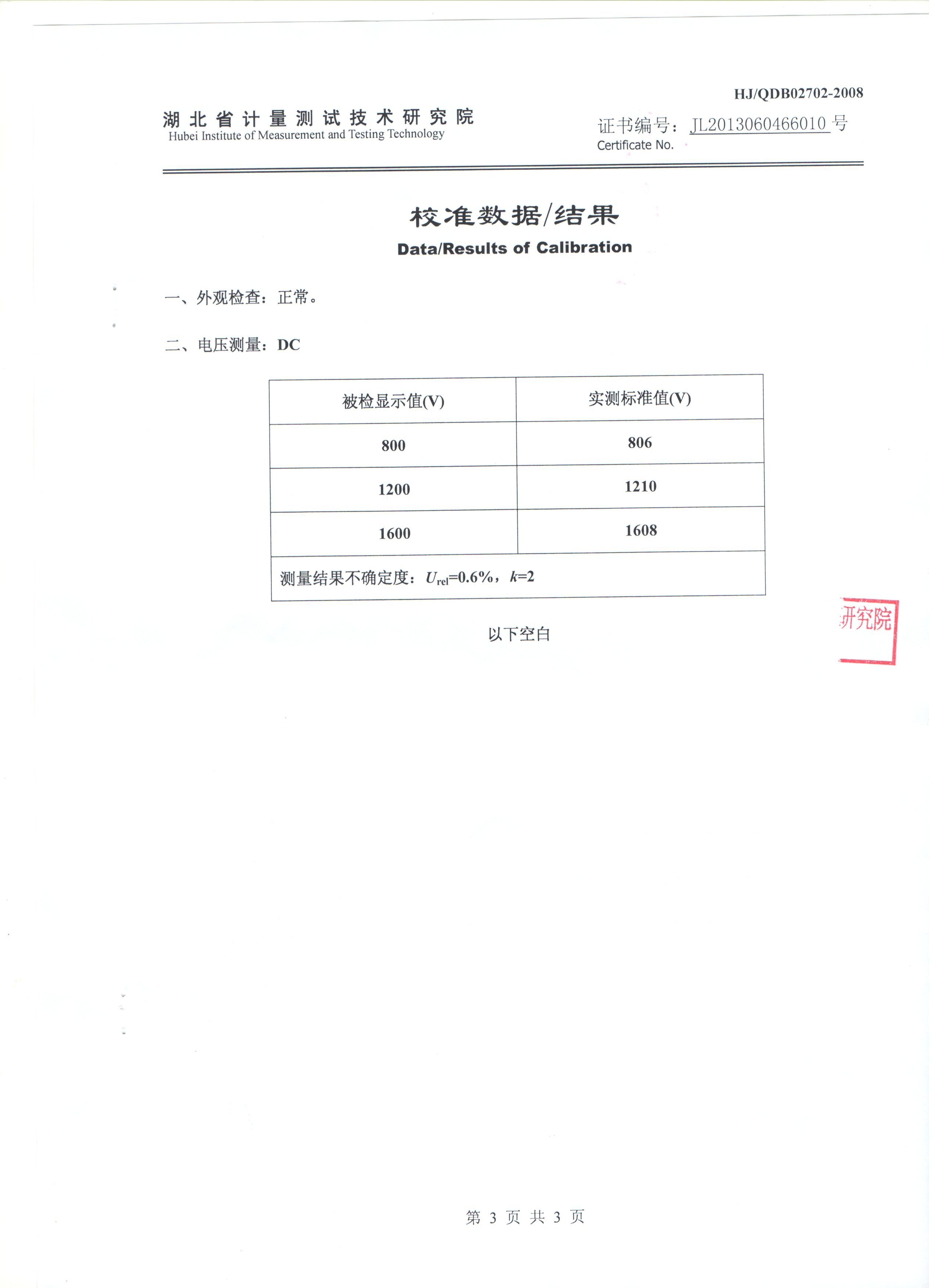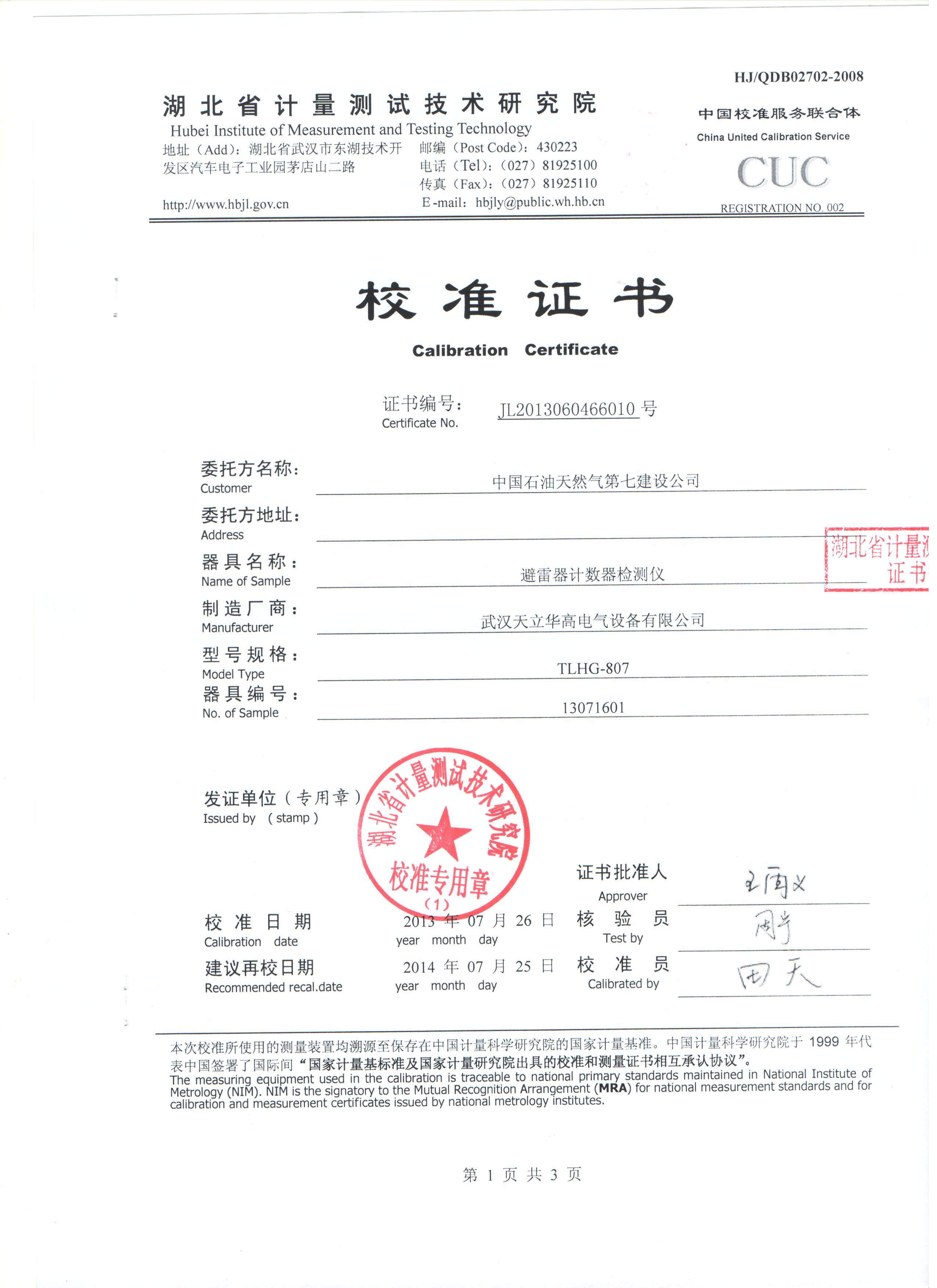 下一篇:TLHG-2671數(shù)字式兆歐表鑒定證書