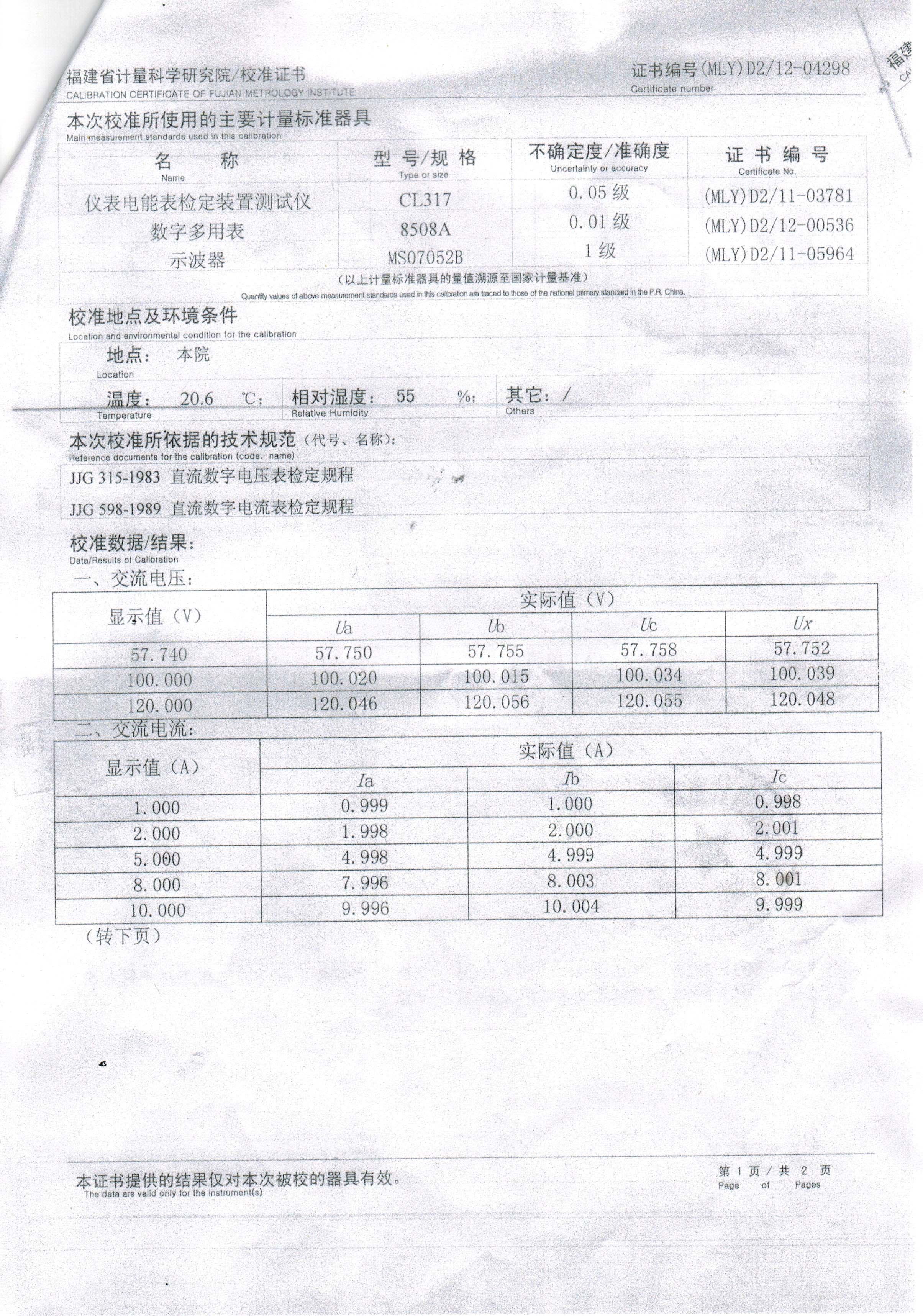 TLHG-860微機(jī)繼電保護(hù)測(cè)試儀鑒定證書